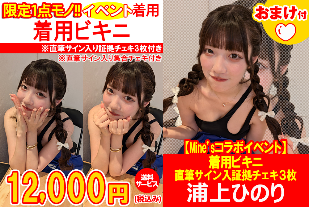 - 《2025.10.26 Mine'sイベント【浦上ひのり】》限定1点!「浦上ひのり」がMine'sコラボイベント時に着用していたビキニ+証拠チェキ3枚+4人集合チェキ(4人の直筆サイン入り)+おまけが付いたセットです。