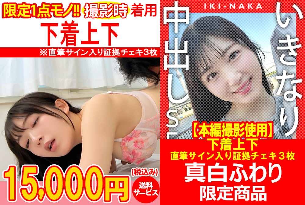 「真白ふわり」が本編撮影時に着用していた下着上下+証拠チェキ3枚のセットです。