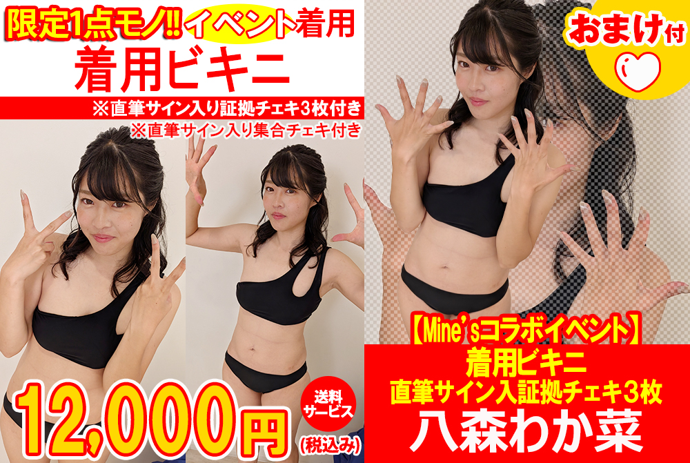 - 《2025.10.26 Mine'sイベント【八森わか菜】》限定1点!「八森わか菜」がMine'sコラボイベント時に着用していたビキニ+証拠チェキ3枚+4人集合チェキ(4人の直筆サイン入り)+おまけが付いたセットです。
