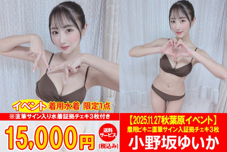 - 限定1点!「小野坂ゆいか」が秋葉原イベント時に着用したビキニ+直筆サイン入証拠チェキ3枚 ●限定商品につき、商品の返品、交換、キャンセルはお受けできません。必ずご確認、ご了承の上、ご注文下さい。 ●商品はなくなり次第終了となります。●発送の準備が出来次第、随時発送致します。≪注≫当商品は、上着、DVDは付きません※12/5(金)0:00予約開始!!