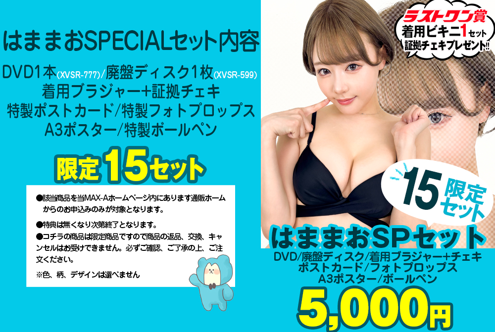 大人気女優【浜崎真緒】チャンのDVDとMAX-Aオリジナルグッズをセットにした超お買い得商品!!
