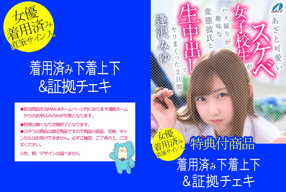 - 逢沢みゆチャン特典付受注販売Blu-rayの数量限定!着用済み下着上下+証拠チェキ(サイン入)が付いてくる!!●限定商品につき、商品の返品、交換、キャンセルはお受けできません。必ずご確認、ご了承の上、ご注文下さい。 ●特典付Blu-rayはなくなり次第終了となります。 ※※2025/11/1(土)0:00予約受付スタート!!