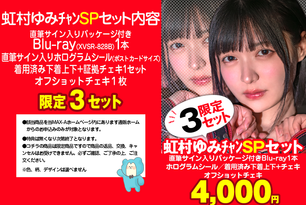 大人気女優【虹村ゆみ】チャンのBlu-rayとMAX-Aオリジナルグッズをセットにした超お買い得商品!!