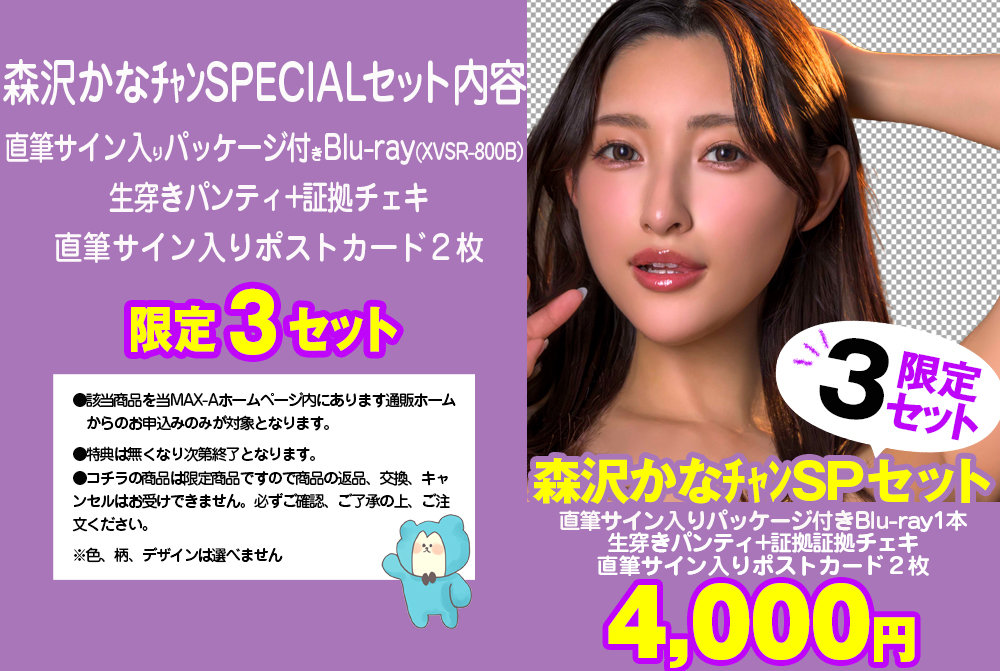 大人気女優【森沢かな】チャンのBlu-rayとMAX-Aオリジナルグッズをセットにした超お買い得商品!!