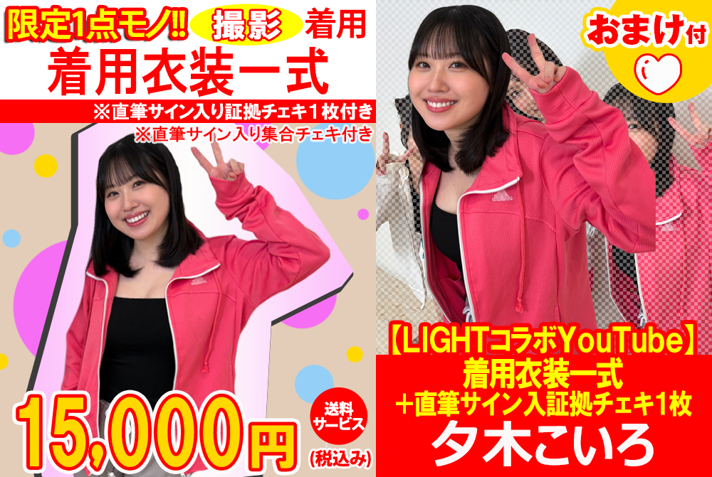 - 《【YouTube撮影衣装】★夕木こいろ★》限定1点!「夕木こいろ」がLIGHTコラボYouTube撮影時に着用していた衣装一式+証拠チェキ1枚+集合チェキ1枚におまけが付いたセットです。