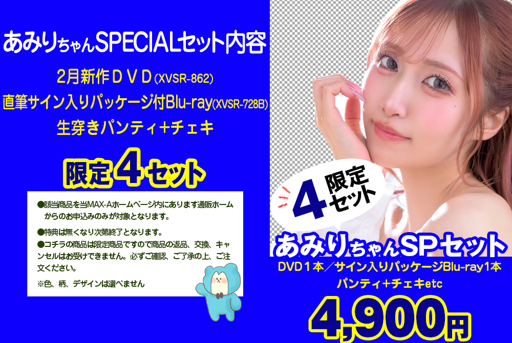 大人気女優【斎藤あみり】チャンのBlu-rayとMAX-Aオリジナルグッズをセットにした超お買い得商品!!