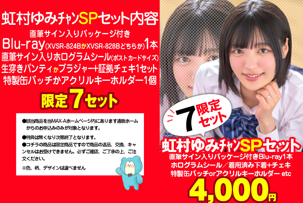 大人気女優【虹村ゆみ】チャンのBlu-rayとMAX-Aオリジナルグッズをセットにした超お買い得商品!!