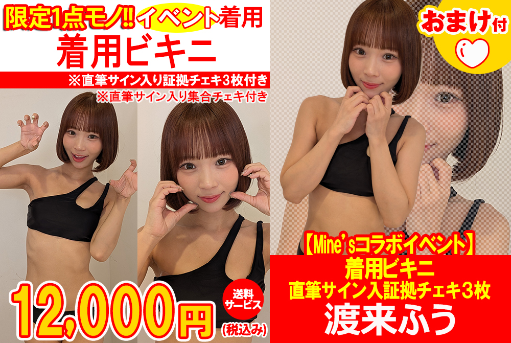 - 《2025.10.26 Mine'sイベント【渡来ふう】》限定1点!「渡来ふう」がMine'sコラボイベント時に着用していたビキニ+証拠チェキ3枚+4人集合チェキ(4人の直筆サイン入り)+おまけが付いたセットです。